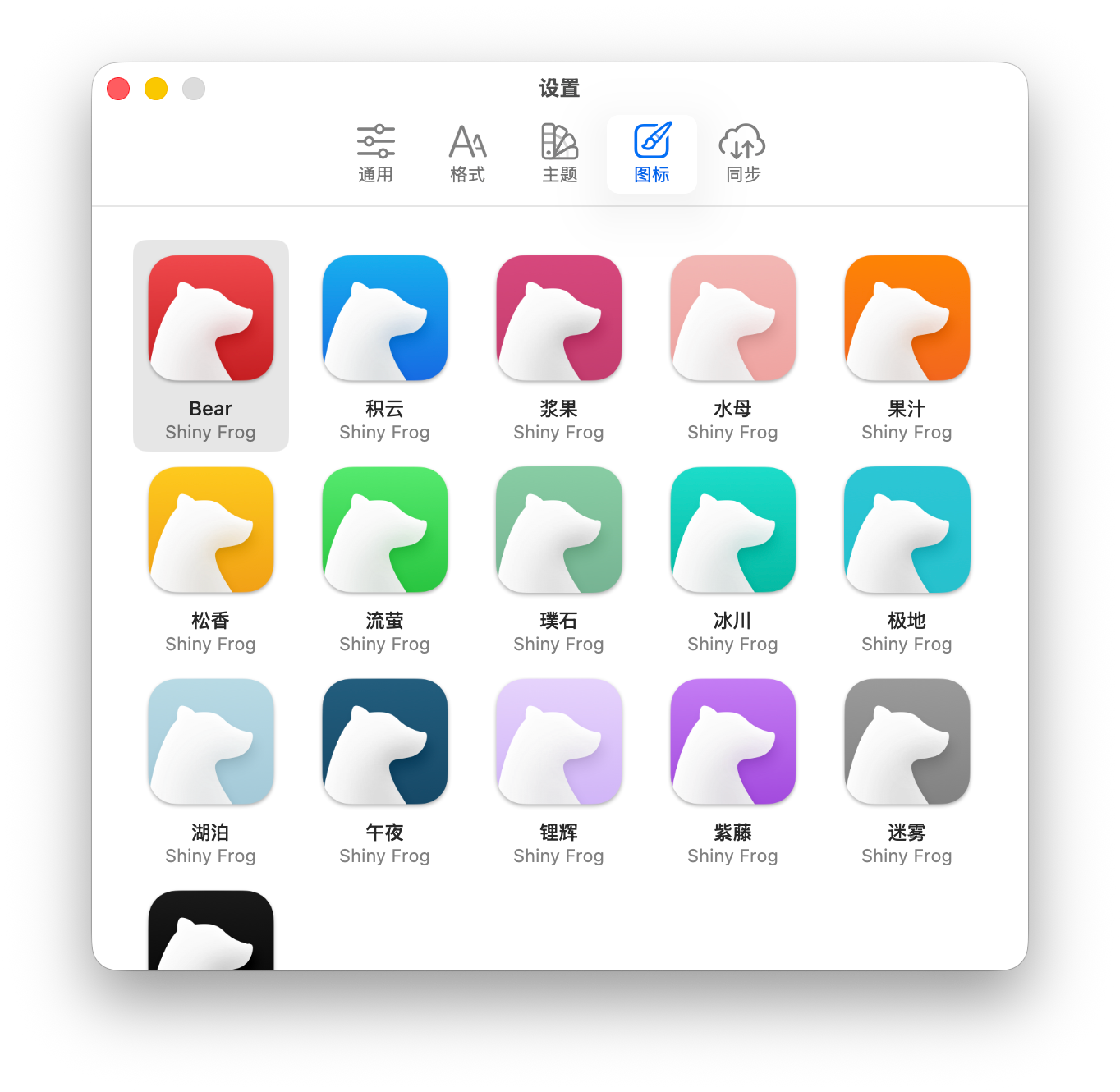 除了经典的熊掌记图标,订阅 Bear Pro还可以解锁更多图标选择,包括: