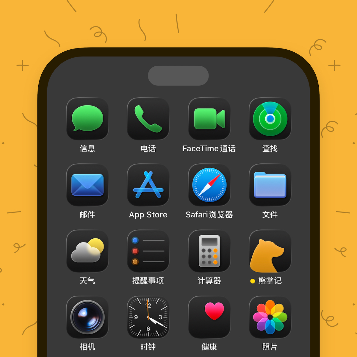 熊掌记已全面支持 iOS 18 全新的“着色 (tinted) 图标模式”。您可以为所有主屏幕图标添加色调,让熊掌记图标完美融入您的专属系统风格中。